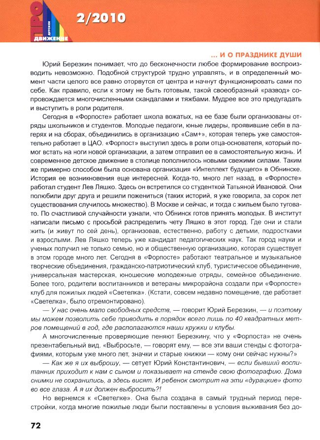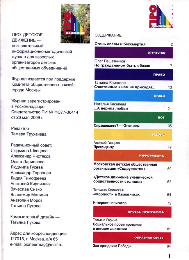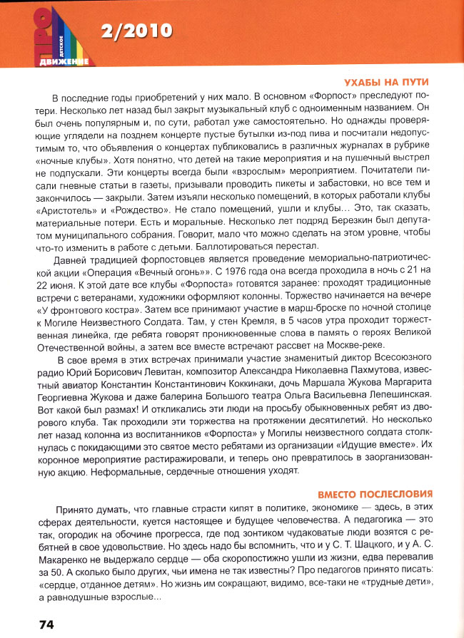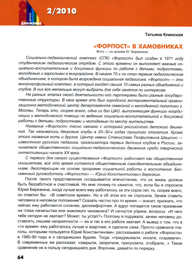 Журнал при поддержке Комитета общественных связей города Москвы. - ФОРПОСТ в Хамовниках.